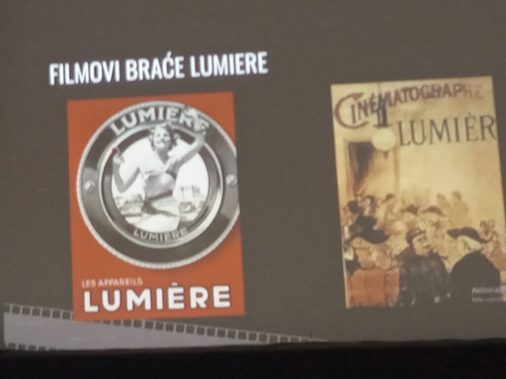 Učenici su pogledali prve dokumentarne filmove braće Lumière iz 1895. godine , Izlazak radnika iz tvornice i Ulazak vlaka u stanicu. Pogledali su i prvi hrvatski dokumentarni film poljskoga redatelja Stanislava Nowortyja iz 1903.godine, Šibenska luka. Nakon kratkih, nijemih filmova, pogledali su i zvučni film, Zelena ljubav Rudolfa Sremeca, nakon čega je uslijedio interaktivni razgovor s učenicima o ugovorenim maloljetničkim brakovima.