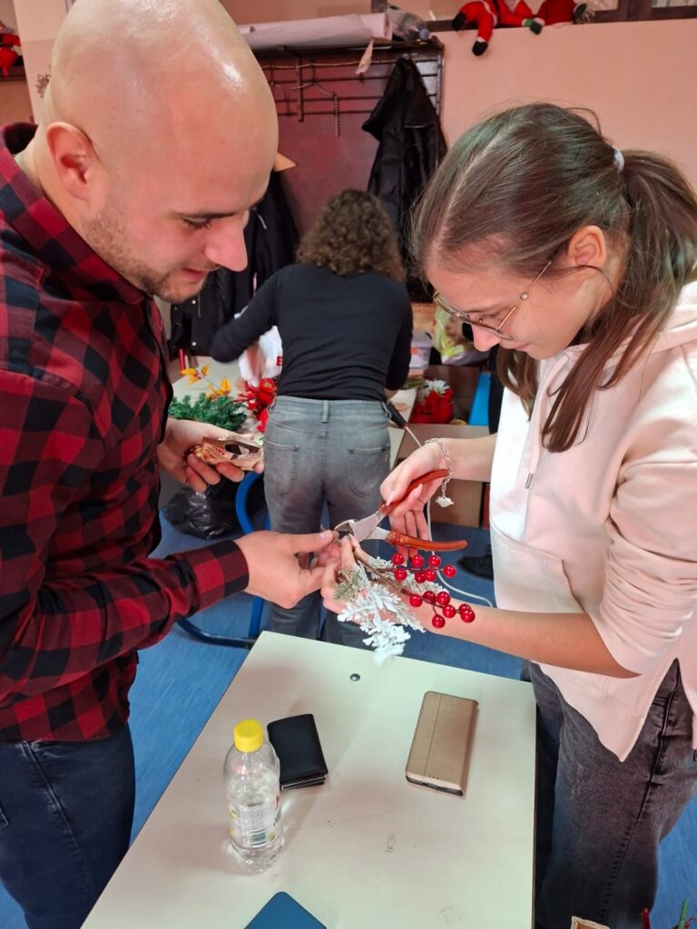 Ovaj puta uz pomoć Ivice, vlasnika cvjećarne Narcis, koji je uručio materijale potrebne za rad, učenici 3.d razreda su u duhu predstojećih blagdana izrađivali adventske vijence, vijence za vrata i ostale božićne ukrase.